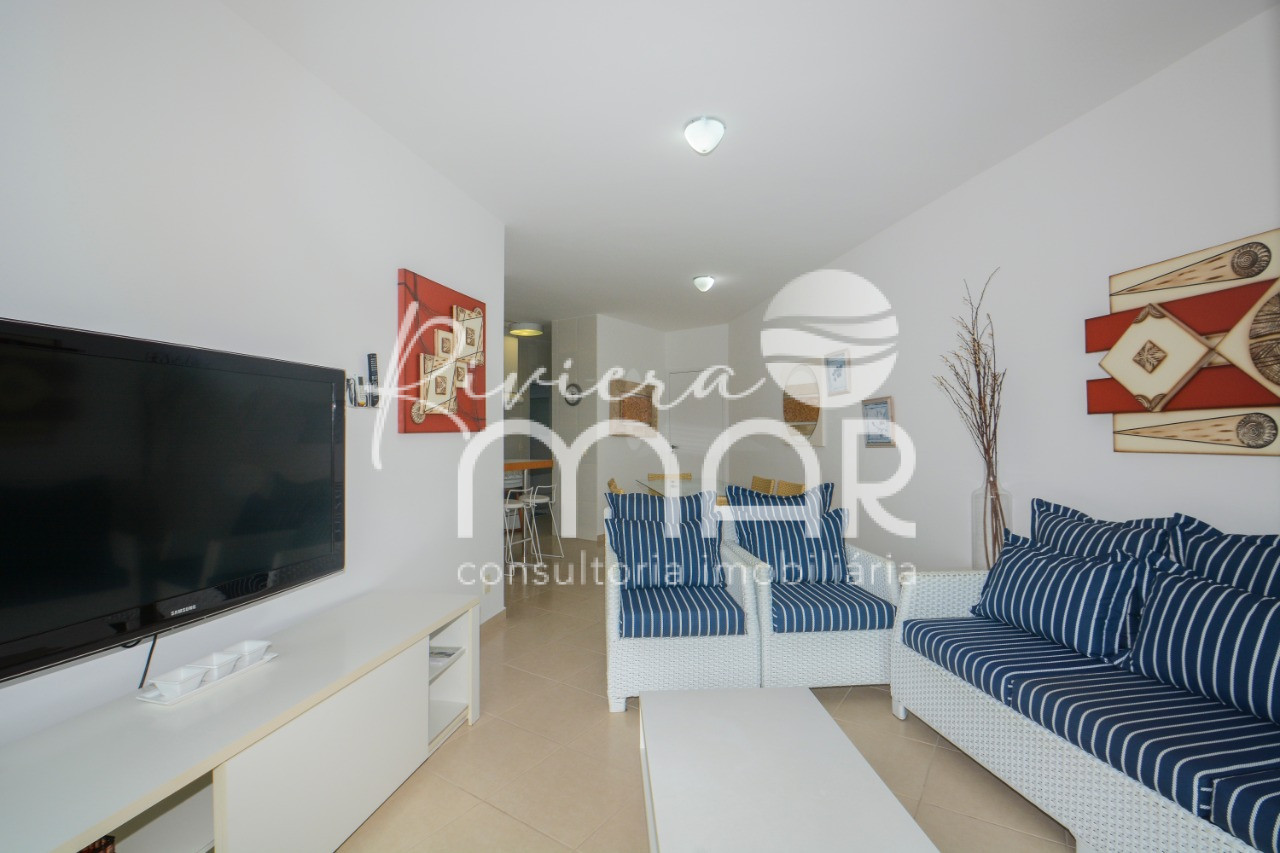 Apartamento mobiliado, 3 dormitórios sendo 1 suíte, 107 m² de área útil, armários embutidos, ar condicionado, cozinha americana completa, área de serviço, banheiro social, banheiro de serviço e 2 vagas de garagem.