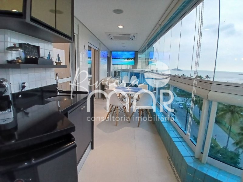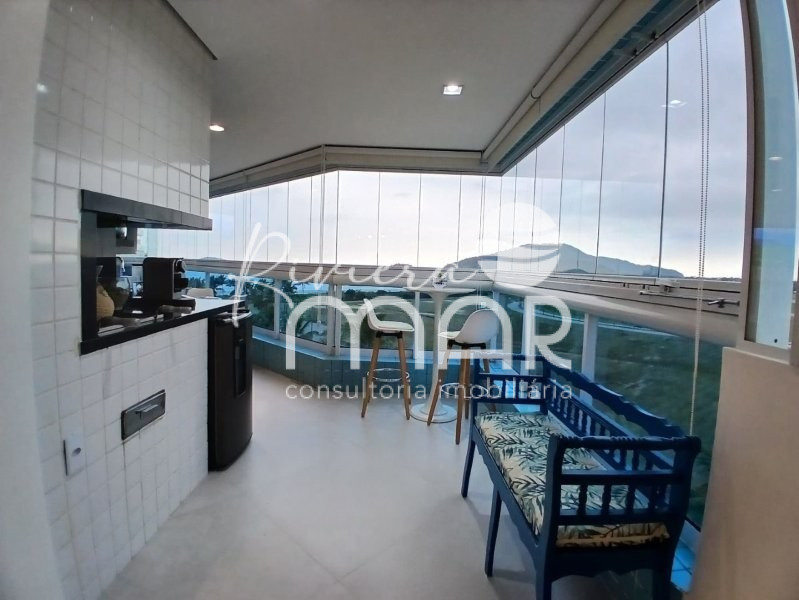 Apartamento pé na areia, 3 dormitórios sendo 1 suíte, 101m² de área útil, varanda gourmet com churrasqueira e fechamento em vidro, sala para 2 ambientes, cozinha americana completa, área de serviço, 2 vagas de garagem.