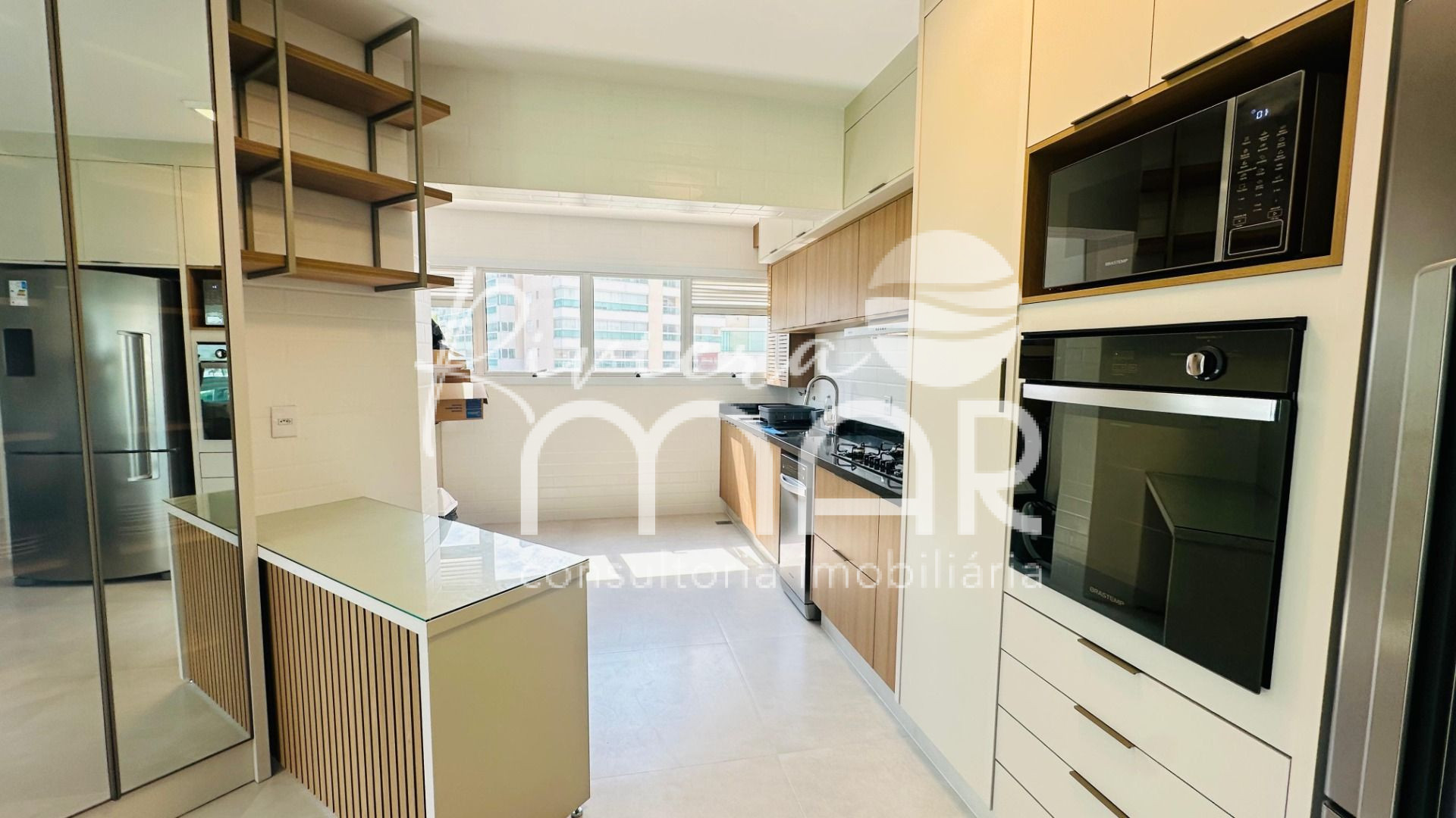 Apartamento com vista para o mar, 3 suítes, área útil de 130 m², armários embutidos, ar condicionado, depósito, terraço gourmet com churrasqueira, living para 2 ambientes, lavabo, cozinha americana com armários completa, área de serviço, banheiro social, 2 vagas cobertas .