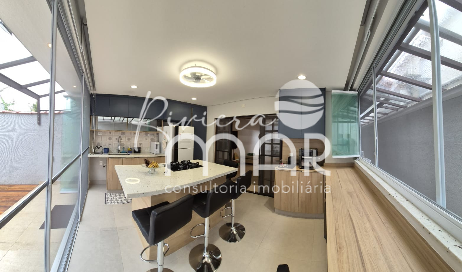 * Cobertura Retrátil de Vidro: A área externa possui uma moderna cobertura de vidro com estrutura de alumínio e pontos retráteis, perfeita para usar em dias de sol ou chuva.