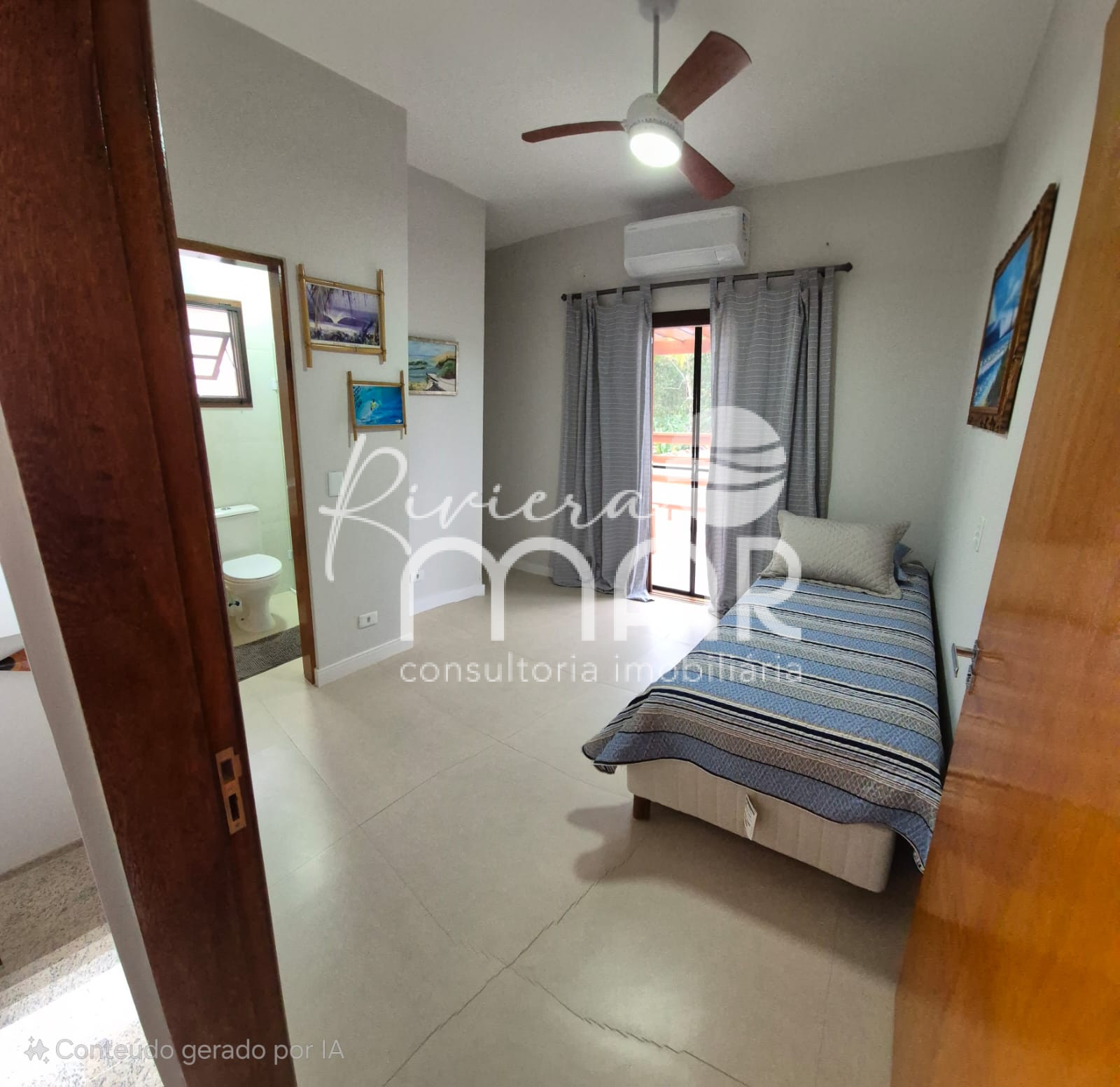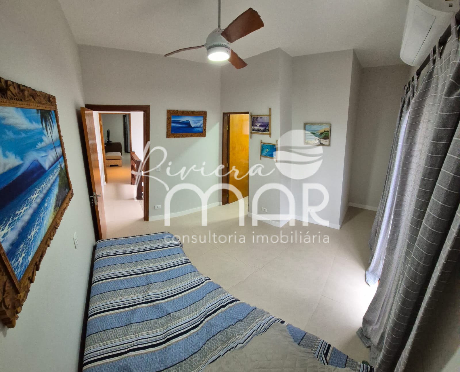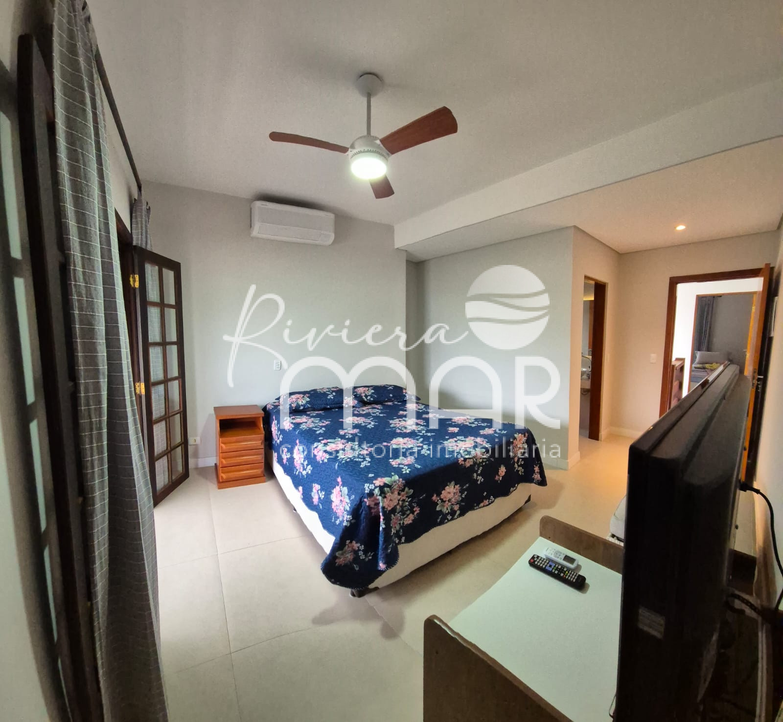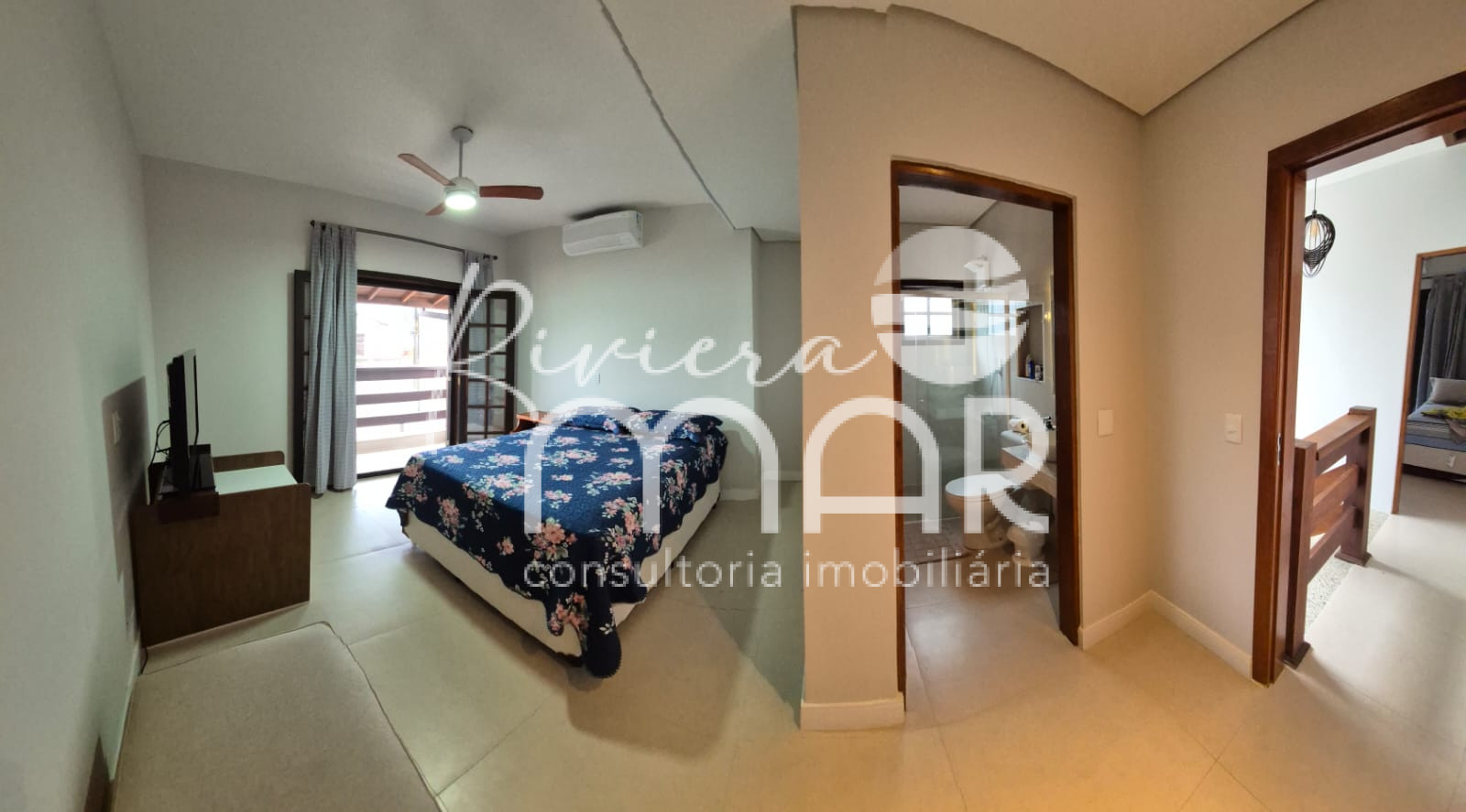 * Suíte Principal: Equipada com cama de casal com colchão novo, gaveteiro e criado-mudo. O banheiro tem chuveiro elétrico Lorenzetti Acqua Ultra Star e a suíte ainda conta com uma pequena sacada para aproveitar a brisa.