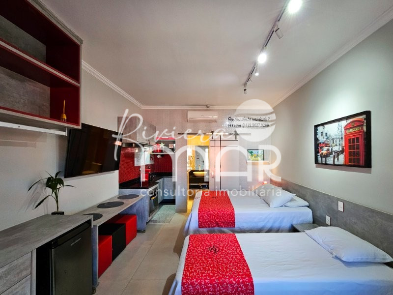 Flat à venda na Riviera de São Lourenço, Bertioga. Com 27 m² de área privativa, 1 suíte e 1 vaga, é perfeito para uma estadia relaxante.