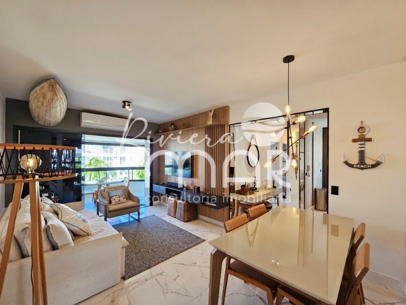 Apartamento com varanda gourmet, 3 dormitórios, Riviera de São Lourenço. Mobiliado, 94 m² de área útil, 3 dormitórios, sendo 1 suíte, ambientes climatizados, sala para 2 ambientes, banheiro social, cozinha americana completa, área de serviço, 2 vagas de garagem.